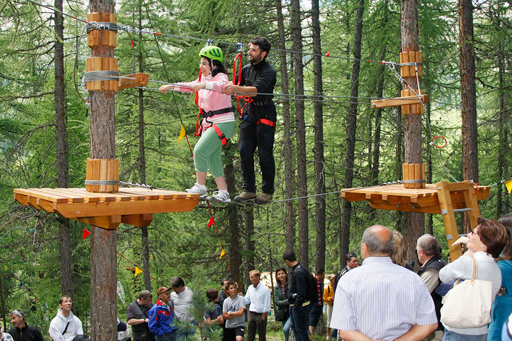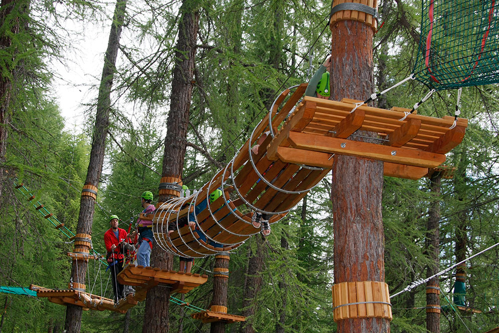 Il vero cuore del Larix Park sono i suoi percorsi avventura, costruiti tra gli alberi secolari. Questi percorsi sono progettati per offrire un’esperienza unica, permettendo ai visitatori di camminare, arrampicarsi e oscillare tra gli alberi in completa sicurezza. Ogni percorso è dotato di piattaforme e passaggi sospesi, realizzati con materiali di alta qualità per garantire la massima sicurezza.